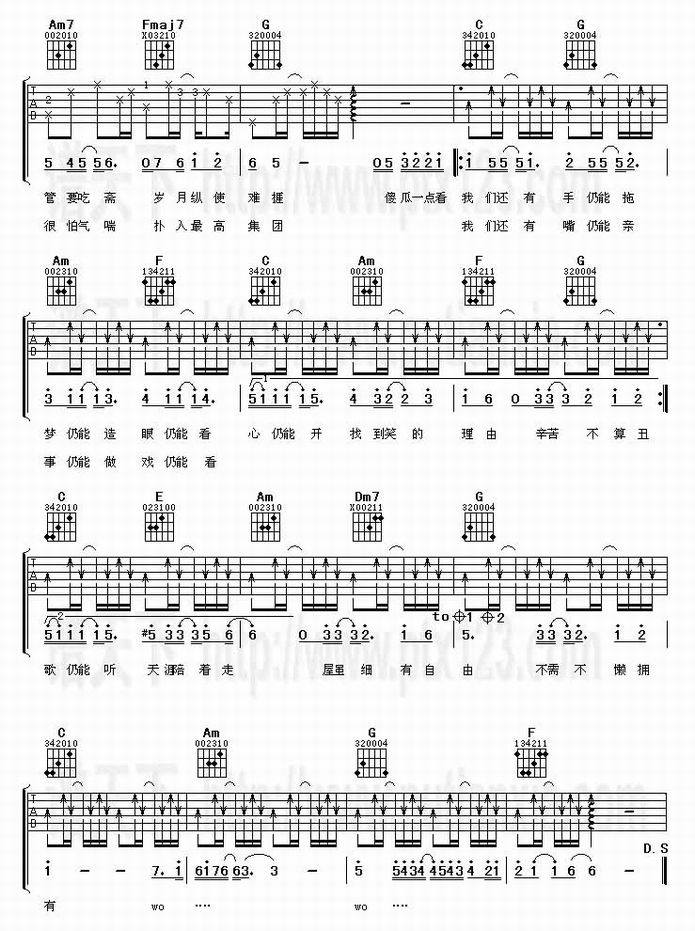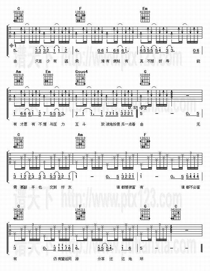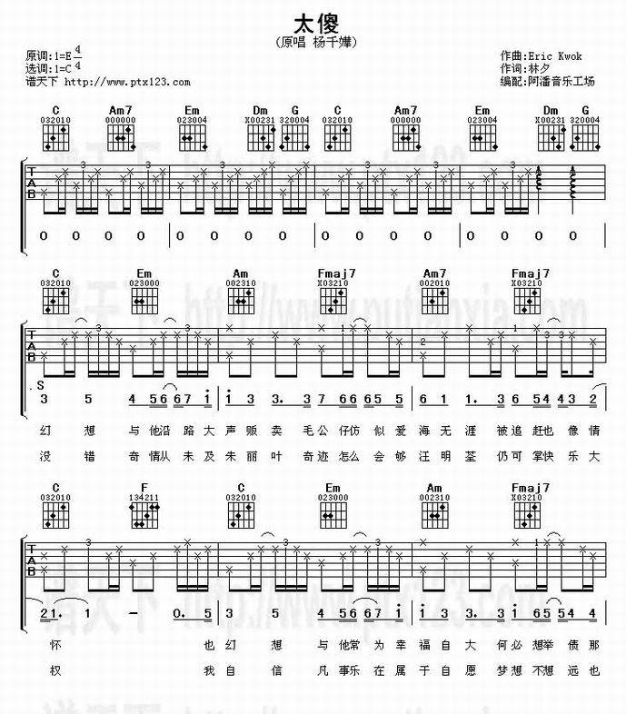 大傻-杨千嬅(吉他谱 吉他曲谱 吉他六线谱 吉他歌谱 吉它谱 影视吉他谱)