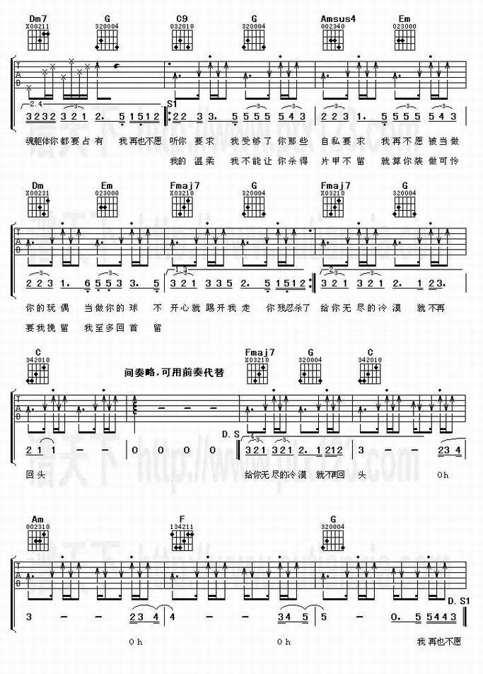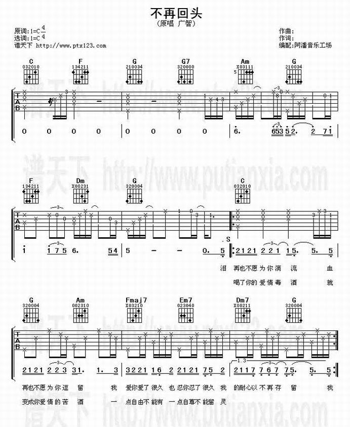 不再回头-广智(吉他谱 吉他曲谱 吉他六线谱 吉他歌谱 吉它谱 影视吉他谱)