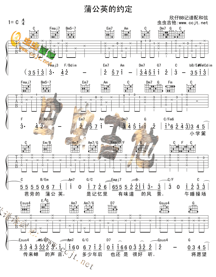 蒲公英的约定-周杰伦(吉他谱 吉他曲谱 吉他六线谱 吉他歌谱 吉它谱 影视吉他谱)