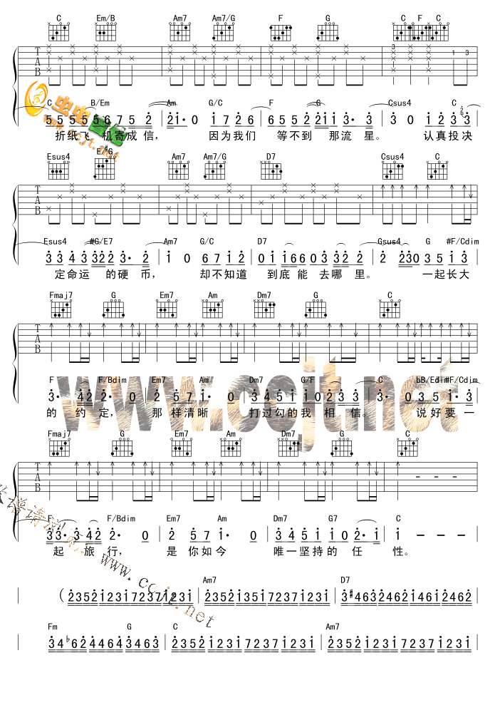 导航: 123-哆来咪 > 音乐资料 > 歌谱曲谱 > 吉他谱 >> 蒲公英的约定-周杰伦(吉他谱)