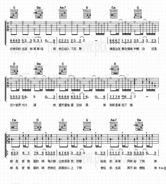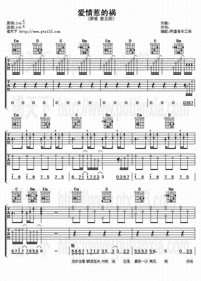 爱情惹的祸-姜玉阳(吉他谱 吉他曲谱 吉他六线谱 吉他歌谱 吉它谱 影视吉他谱)