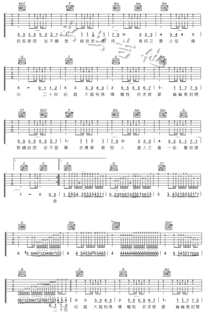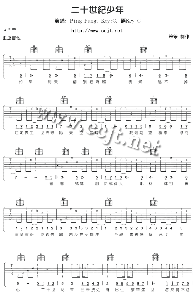 二十世纪少年-Ping Pung(吉他谱 吉他曲谱 吉他六线谱 吉他歌谱 吉它谱 影视吉他谱)