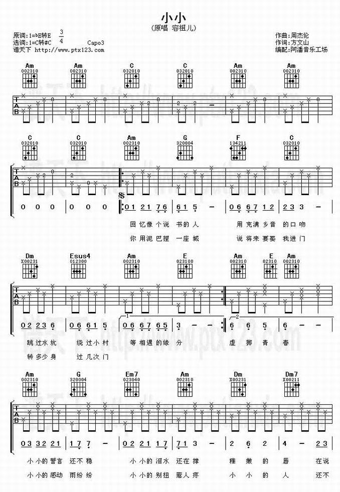 小小-容祖儿(吉他谱 吉他曲谱 吉他六线谱 吉他歌谱 吉它谱 影视吉他谱)