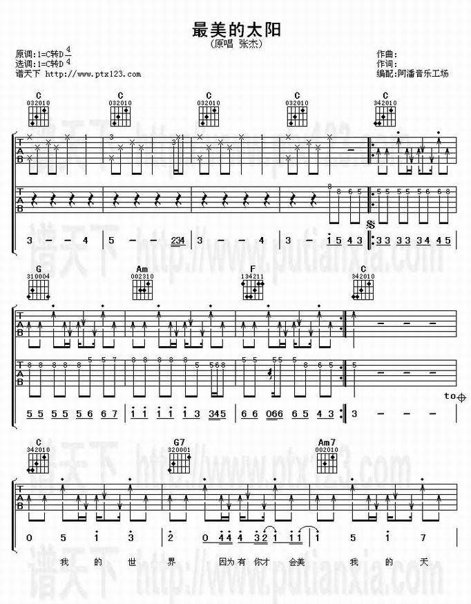 最美的太阳-张杰(吉他谱 吉他曲谱 吉他六线谱 吉他歌谱 吉它谱 影视吉他谱)