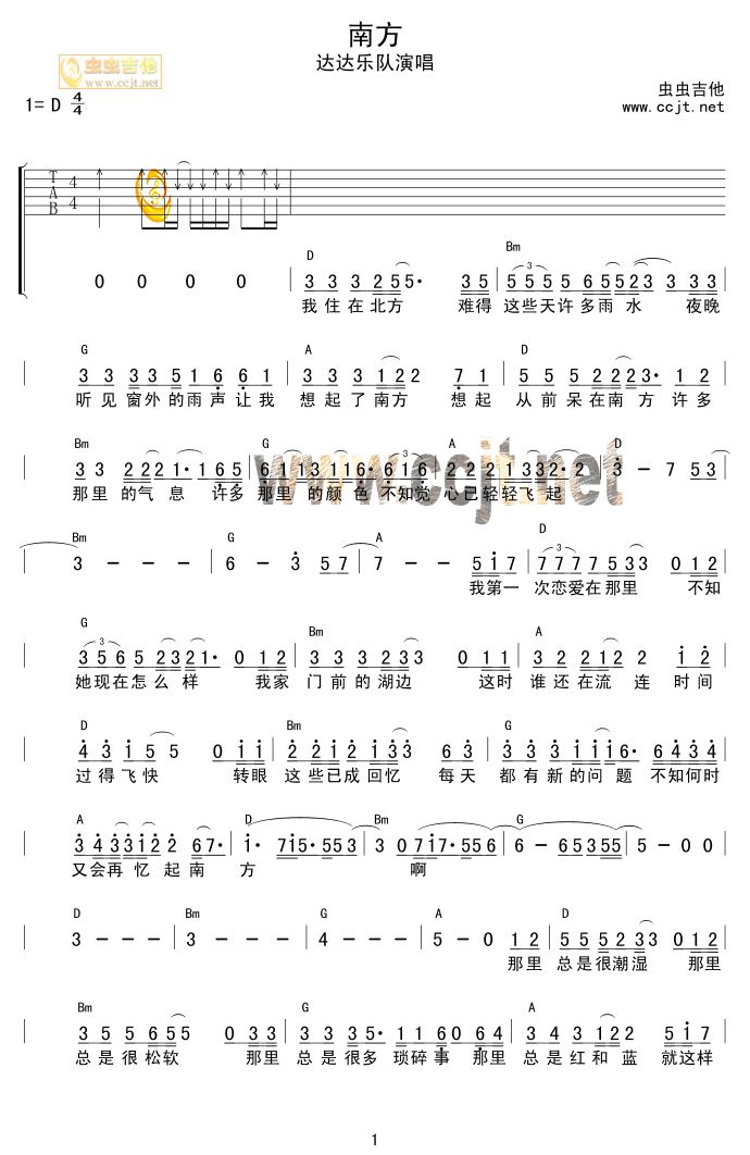 南方-达达乐队(简谱 歌谱 歌曲简谱 合唱简谱 民歌简谱 影视简谱)