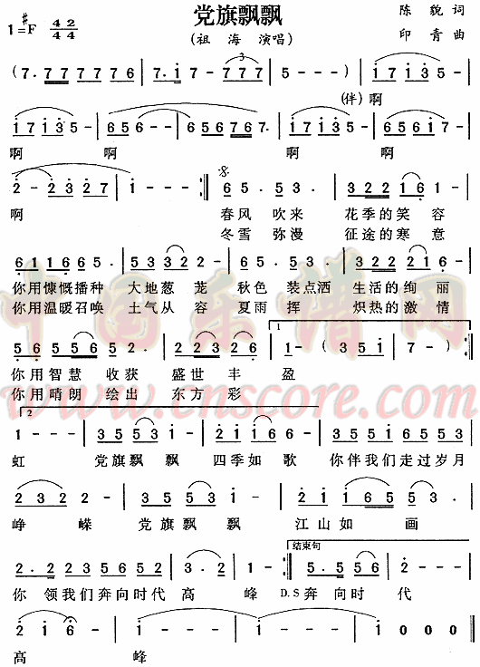 党旗飘飘-祖海(简谱 歌谱 歌曲简谱 合唱简谱 民歌简谱 影视简谱)