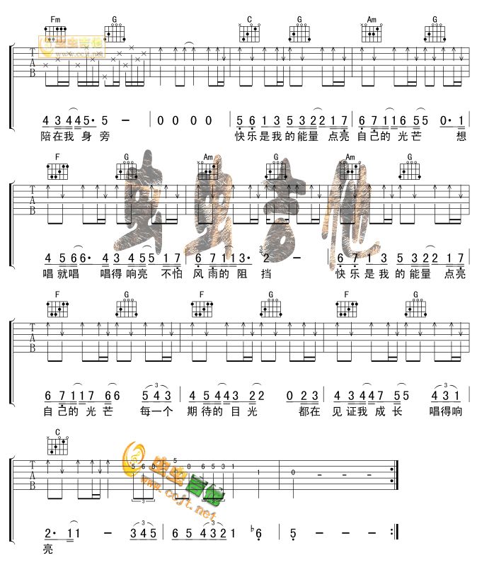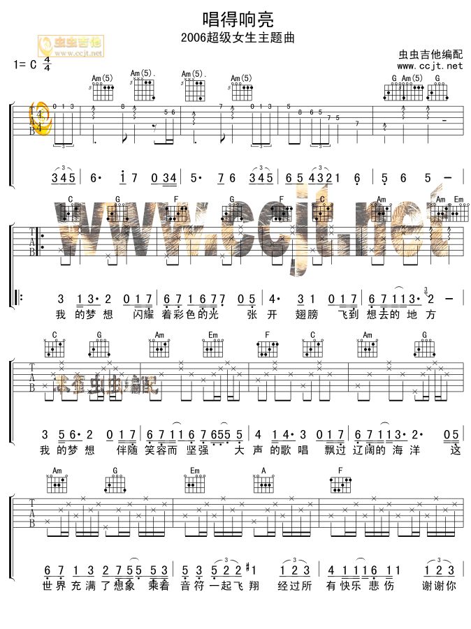 唱得响亮-李宇春(吉他谱 吉他曲谱 吉他六线谱 吉他歌谱 吉它谱 影视吉他谱)