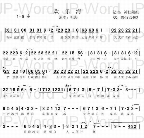 欢乐海-祖海(简谱 歌谱 歌曲简谱 合唱简谱 民歌简谱 影视简谱)