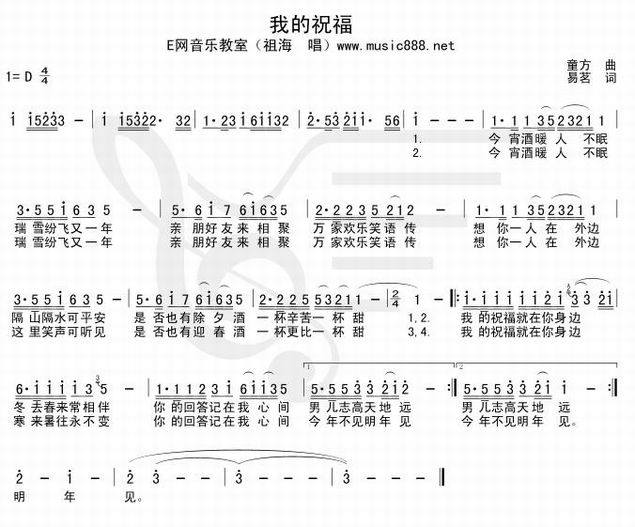 我的祝福-祖海(简谱 歌谱 歌曲简谱 合唱简谱 民歌简谱 影视简谱)