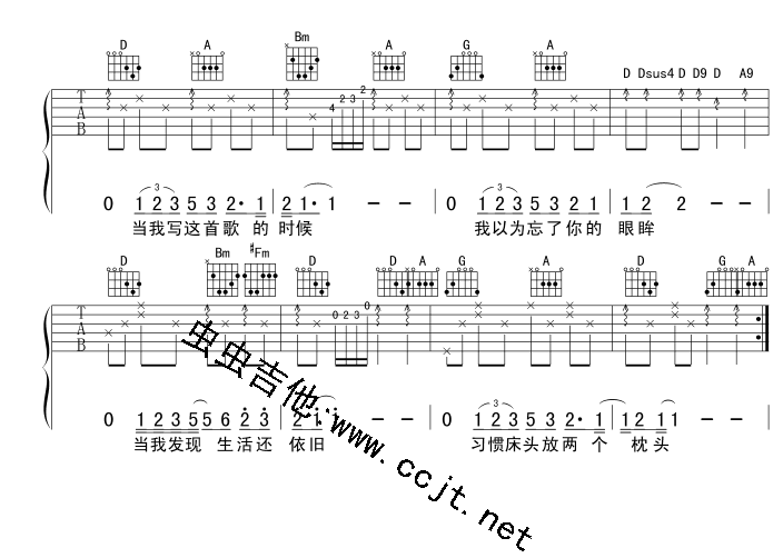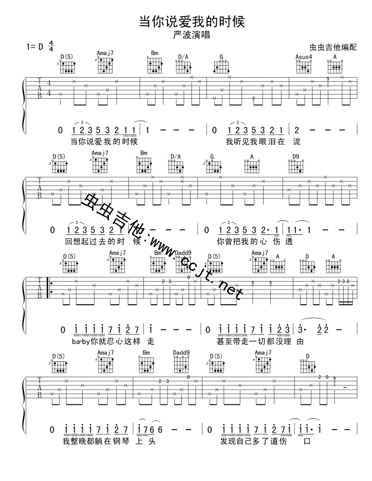 当你说爱我的时候-严波(吉他谱 吉他曲谱 吉他六线谱 吉他歌谱 吉它谱 影视吉他谱)