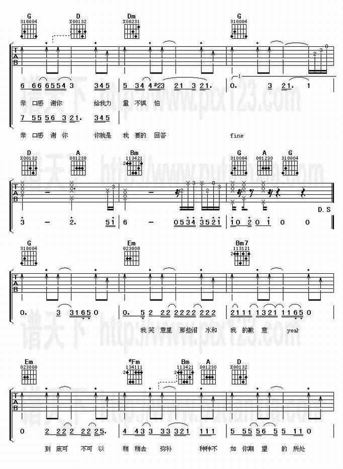 其实我一直想对你说-莫文蔚(吉他谱 吉他曲谱 吉他六线谱 吉他歌谱 吉它谱 影视吉他谱)