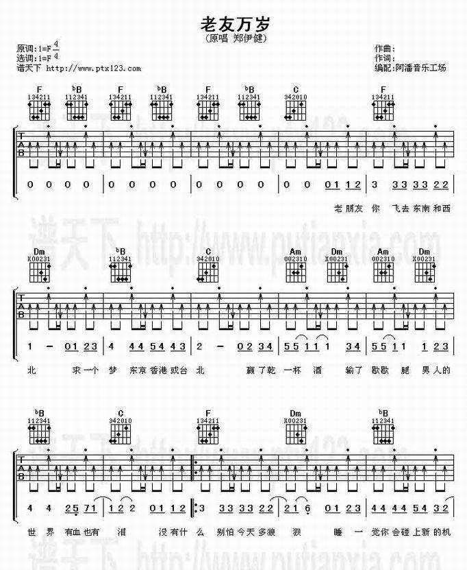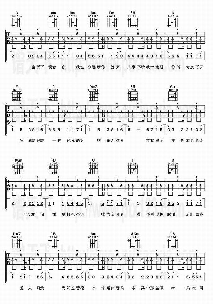 老友万岁-郑伊健(吉他谱 吉他曲谱 吉他六线谱 吉他歌谱 吉它谱 影视吉他谱)