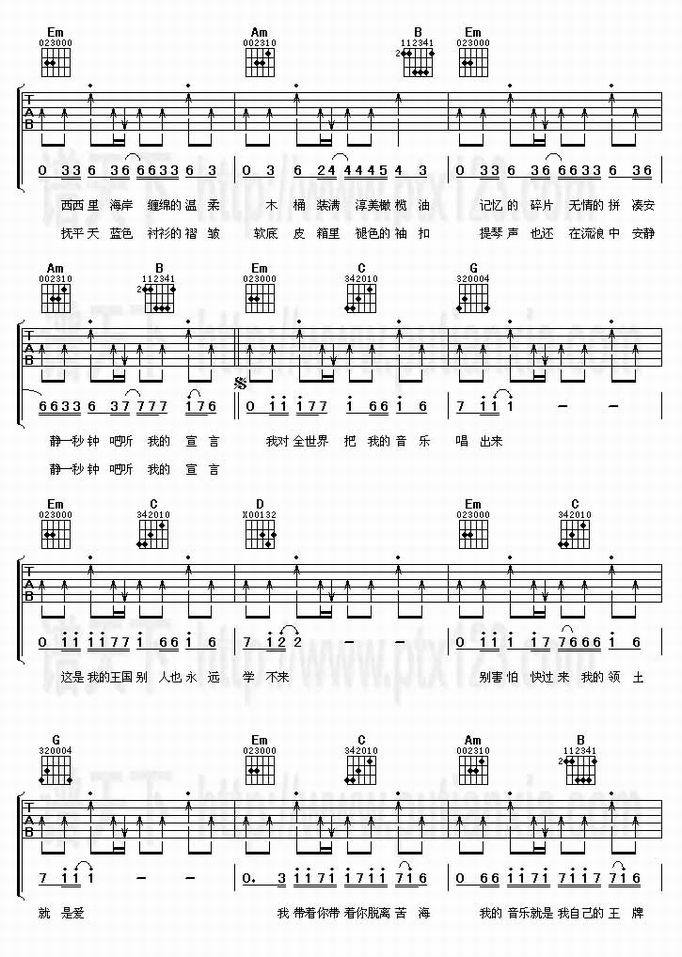 我的王国-李宇春(吉他谱 吉他曲谱 吉他六线谱 吉他歌谱 吉它谱 影视吉他谱)