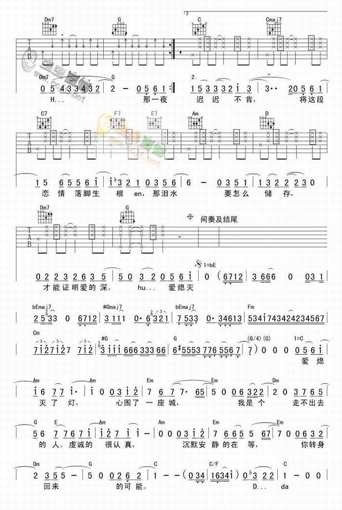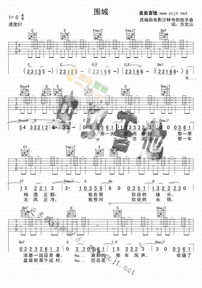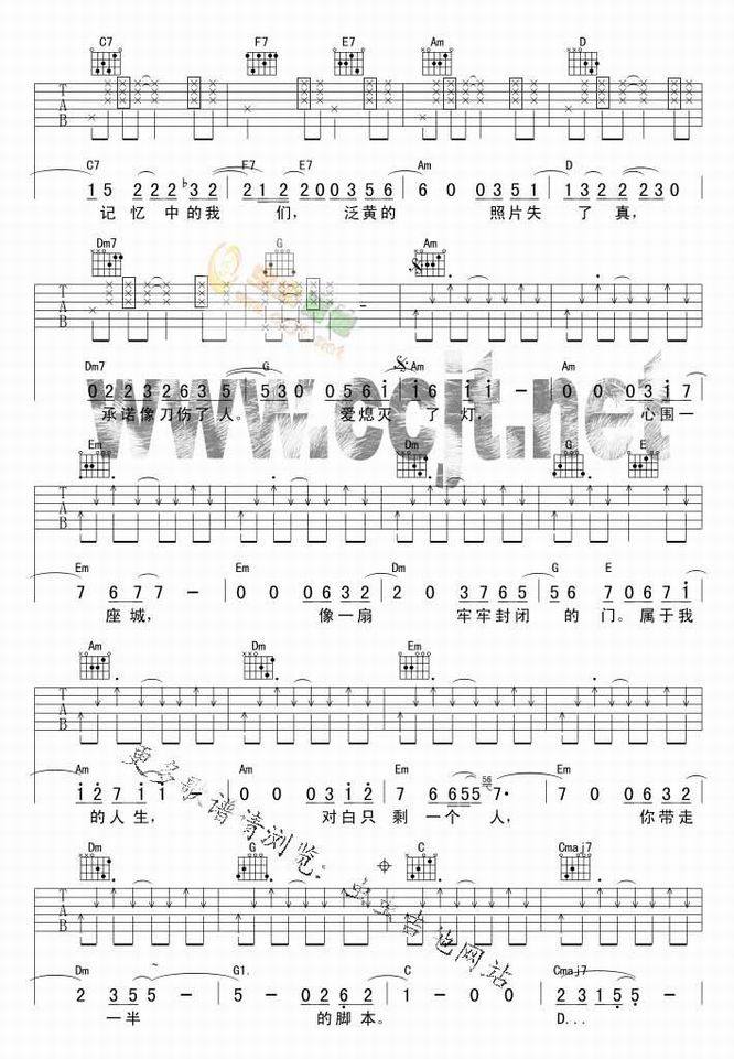 导航: 123-哆来咪 > 音乐资料 > 歌谱曲谱 > 吉他谱 >> 围城-张靓颖(吉他谱_版本2)