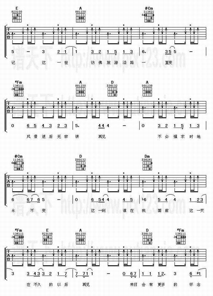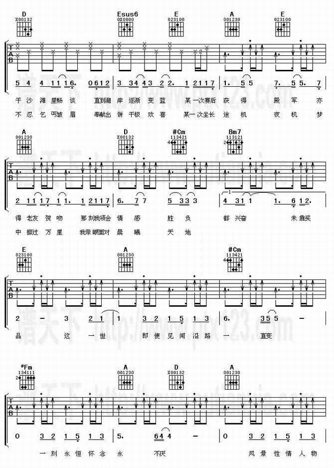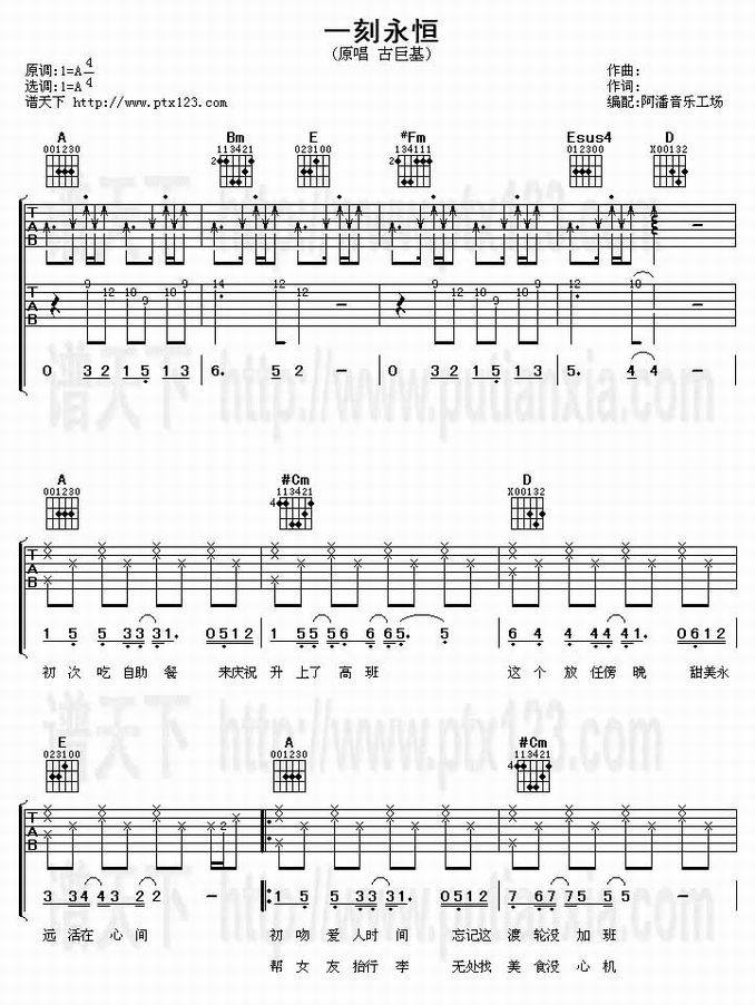 一刻永恒-古巨基(吉他谱 吉他曲谱 吉他六线谱 吉他歌谱 吉它谱 影视吉他谱)