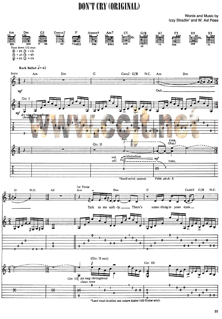 Don"t Cry-gun and roses枪和玫瑰(吉他谱 吉他曲谱 吉他六线谱 吉他歌谱 吉它谱 影视吉他谱)