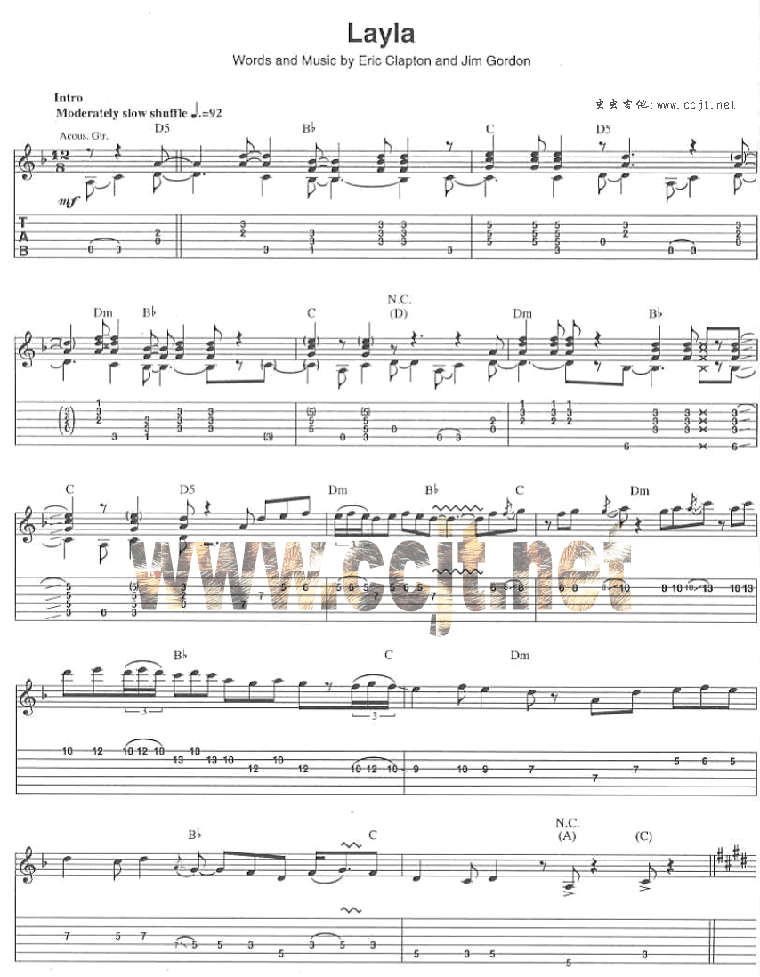 Layla-Eric Clapton克莱普顿(吉他谱 吉他曲谱 吉他六线谱 吉他歌谱 吉它谱 影视吉他谱)