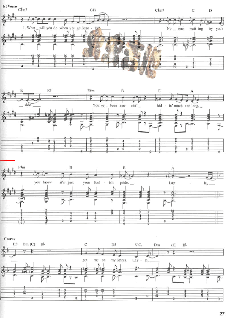 >> Layla-Eric Clapton克莱普顿(原版吉他谱)
