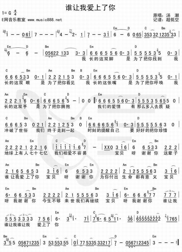 谁让我爱上了你-汤潮(简谱 歌谱 歌曲简谱 合唱简谱 民歌简谱 影视简谱)