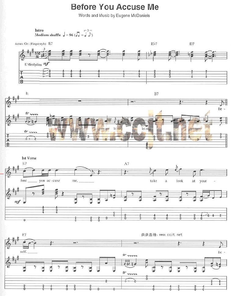 Before You Accuse Me-Eric Clapton 克莱普顿(吉他谱 吉他曲谱 吉他六线谱 吉他歌谱 吉它谱 影视吉他谱)