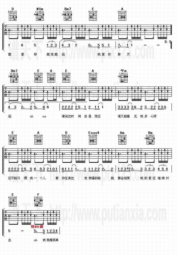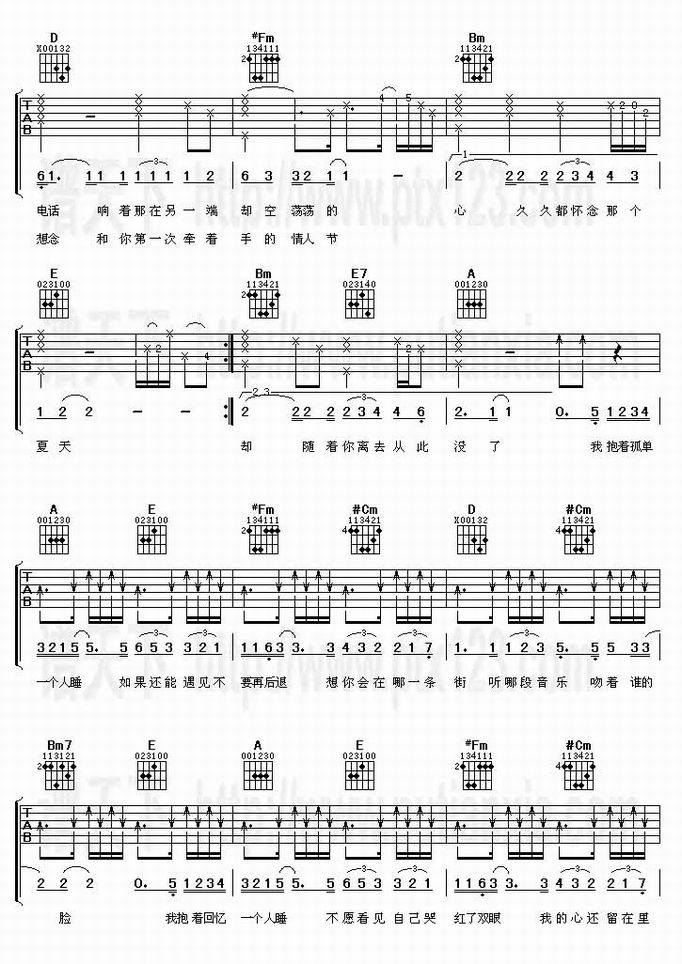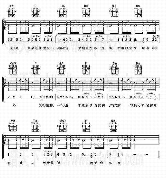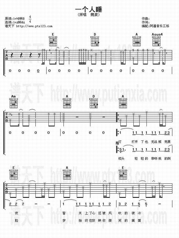 一个人睡-魏晨(吉他谱 吉他曲谱 吉他六线谱 吉他歌谱 吉它谱 影视吉他谱)
