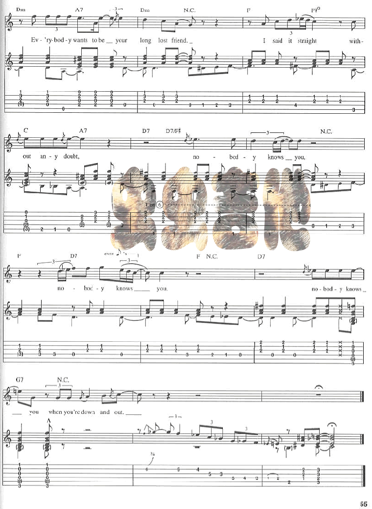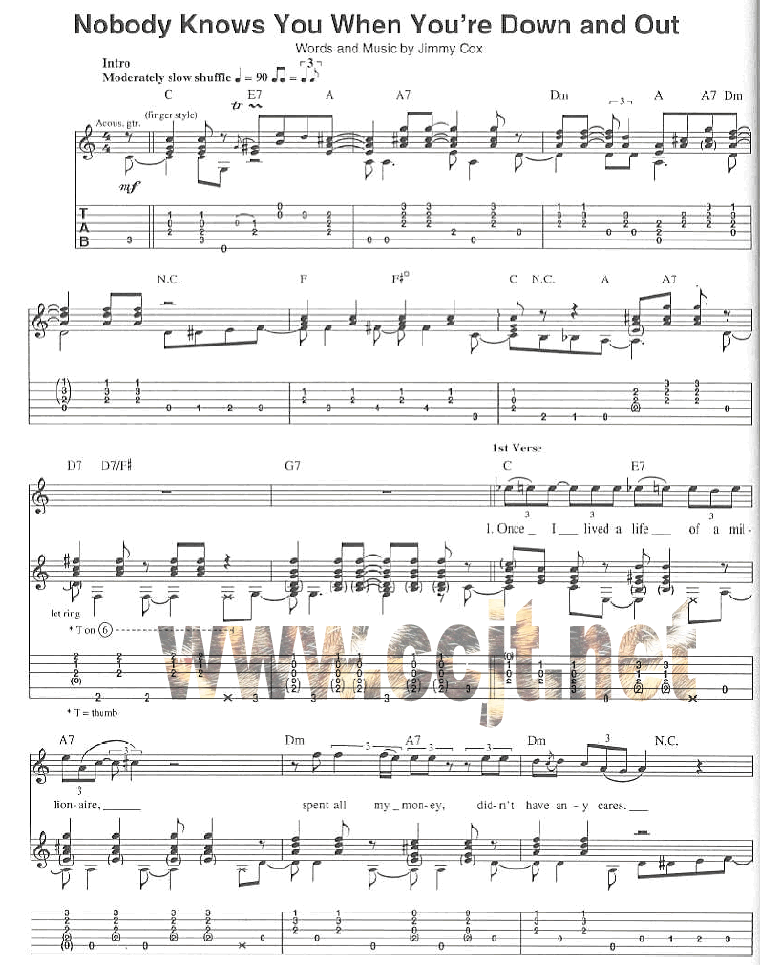 Nobody Knows You When You"re Down And Out-Eric Clapton 克莱普顿(吉他谱 吉他曲谱 吉他六线谱 吉他歌谱 吉它谱 影视吉他谱)
