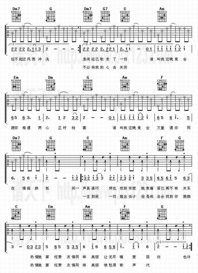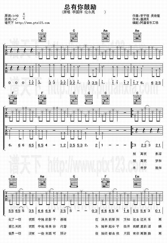 总有你鼓励-李国祥/伦永亮(吉他谱 吉他曲谱 吉他六线谱 吉他歌谱 吉它谱 影视吉他谱)