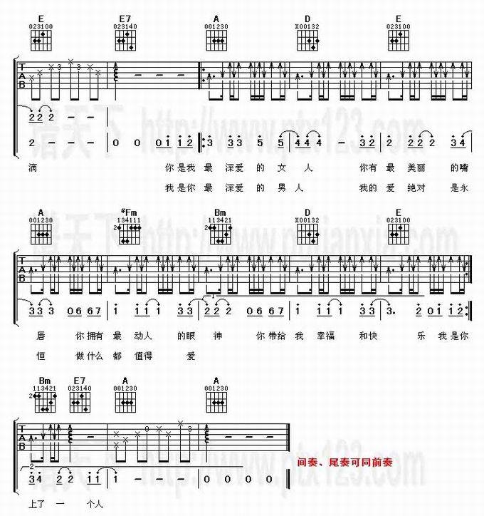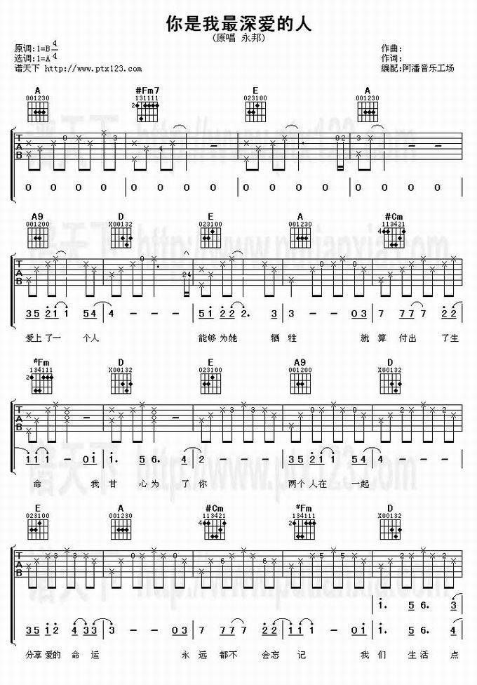 你是我最深爱的人-永邦(吉他谱 吉他曲谱 吉他六线谱 吉他歌谱 吉它谱 影视吉他谱)