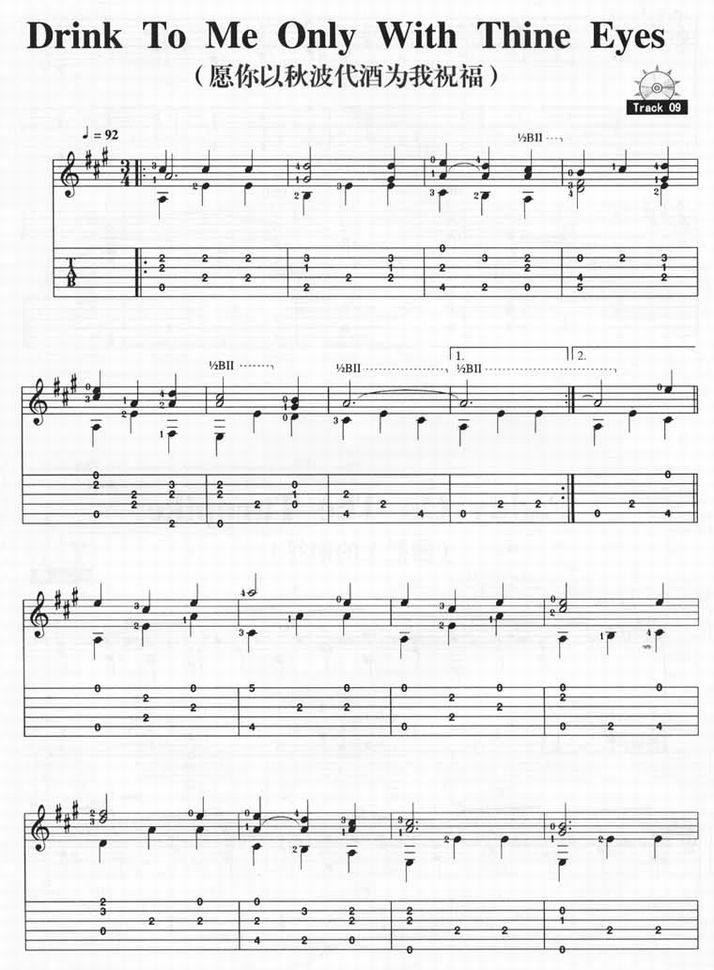 >> Drink To Me Only With Thine Eyes(吉它曲谱)