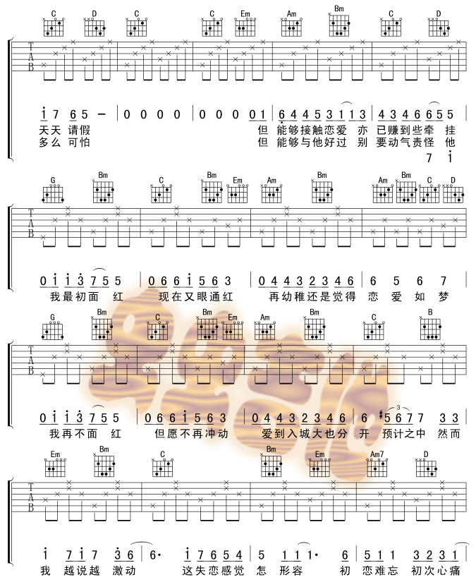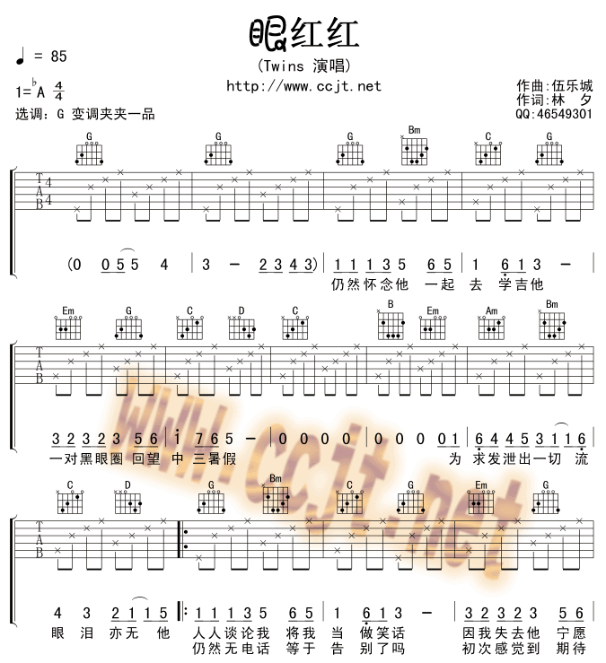 眼红红-Twins(吉他谱 吉他曲谱 吉他六线谱 吉他歌谱 吉它谱 影视吉他谱)