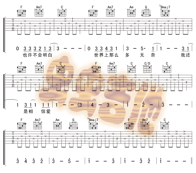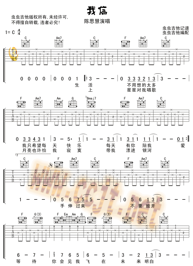我信-陈思慧(吉他谱 吉他曲谱 吉他六线谱 吉他歌谱 吉它谱 影视吉他谱)