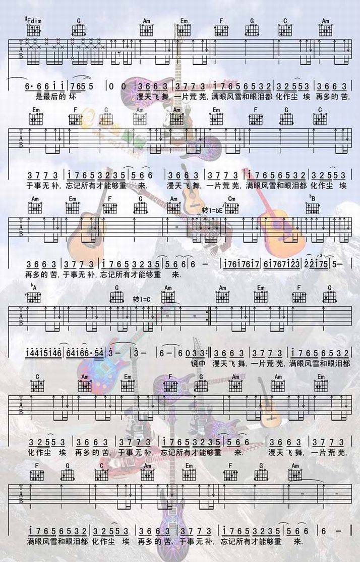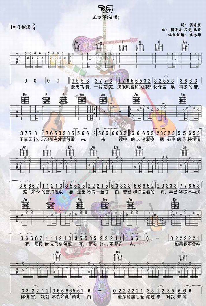 飞舞-王冰洋(吉他谱 吉他曲谱 吉他六线谱 吉他歌谱 吉它谱 影视吉他谱)