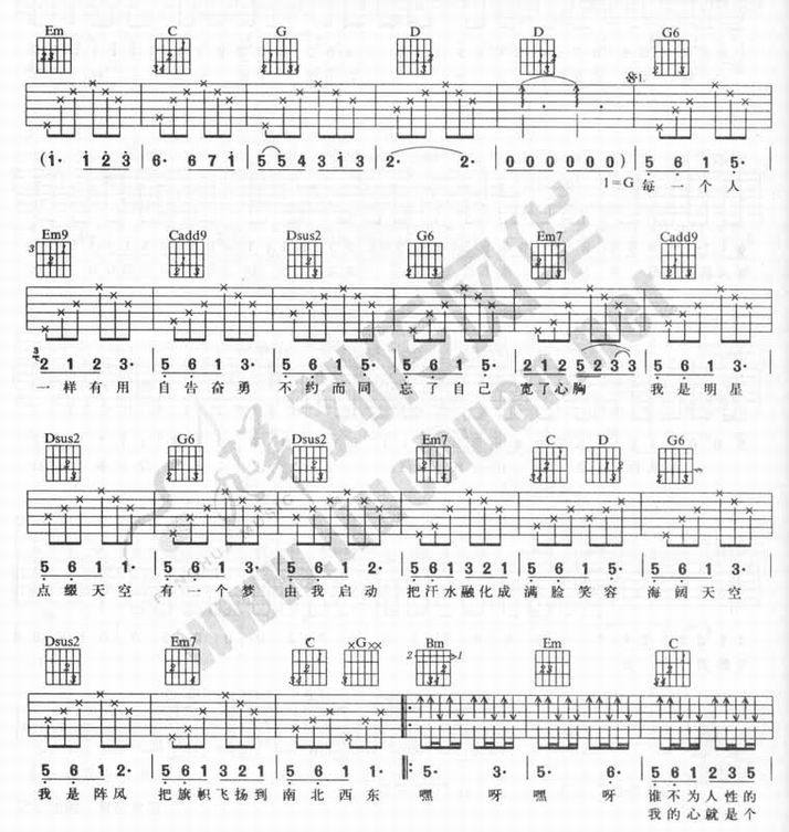 我是明星-周华健(吉他谱 吉他曲谱 吉他六线谱 吉他歌谱 吉它谱 影视吉他谱)