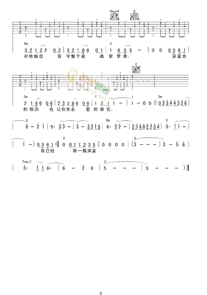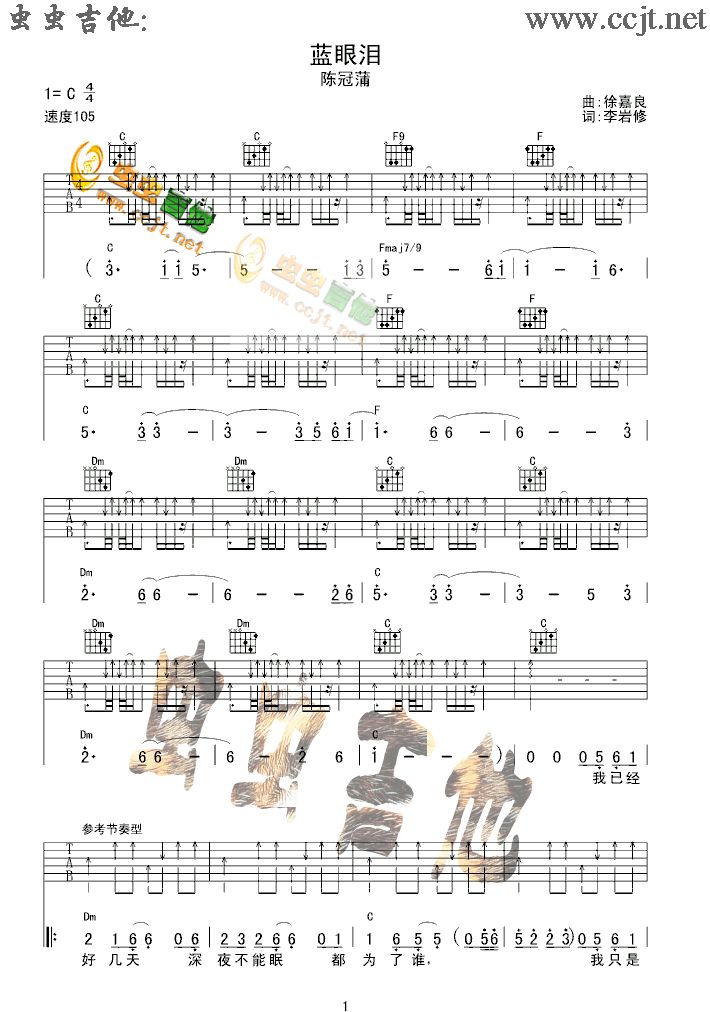 蓝眼泪-陈冠蒲(吉他谱 吉他曲谱 吉他六线谱 吉他歌谱 吉它谱 影视吉他谱)