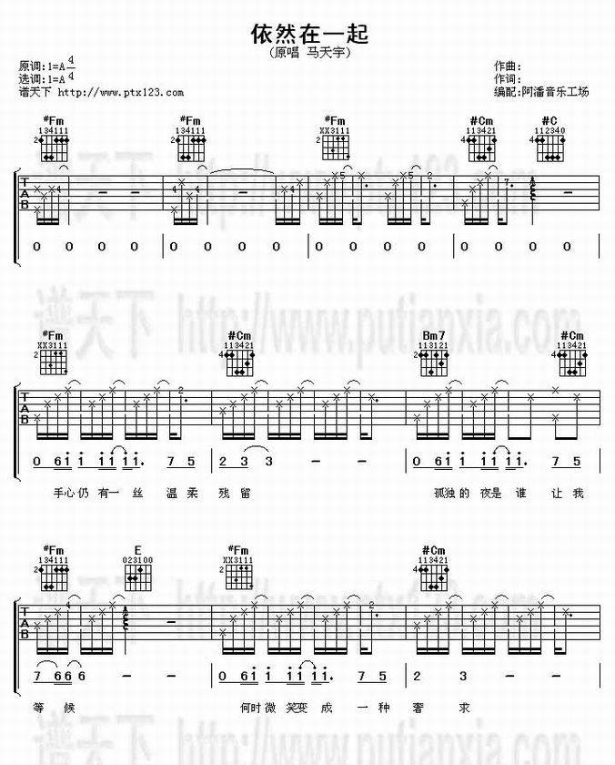 依然在一起-马天宇(吉他谱 吉他曲谱 吉他六线谱 吉他歌谱 吉它谱 影视吉他谱)
