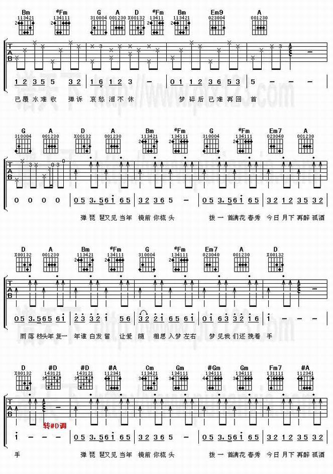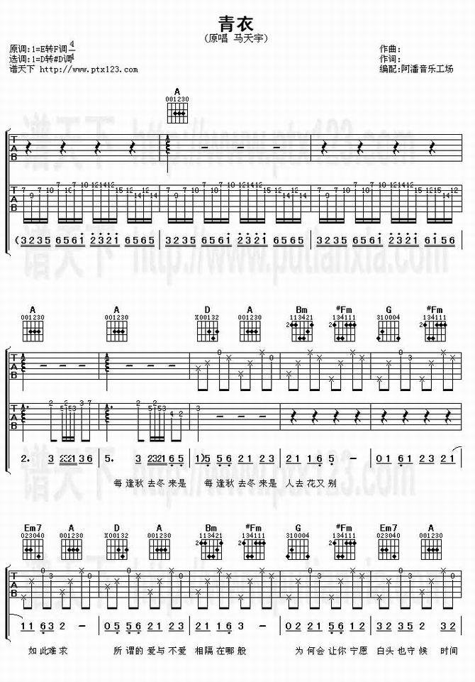 青衣-马天宇(吉他谱 吉他曲谱 吉他六线谱 吉他歌谱 吉它谱 影视吉他谱)