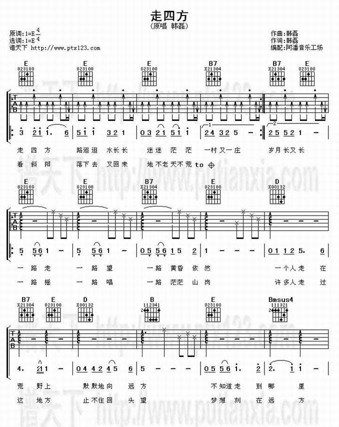 走四方-韩磊(吉他谱 吉他曲谱 吉他六线谱 吉他歌谱 吉它谱 影视吉他谱)