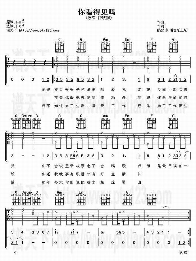你看得见吗-钟欣桐(吉他谱 吉他曲谱 吉他六线谱 吉他歌谱 吉它谱 影视吉他谱)