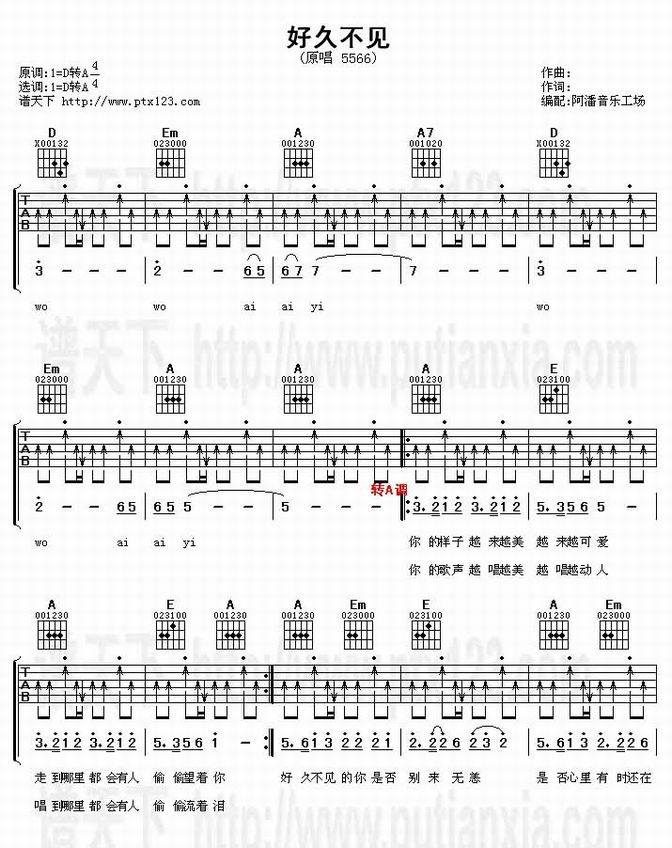 好久不见-5566(吉他谱 吉他曲谱 吉他六线谱 吉他歌谱 吉它谱 影视吉他谱)