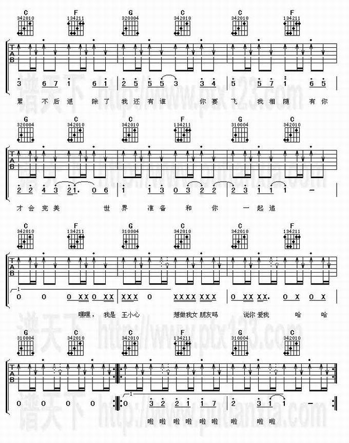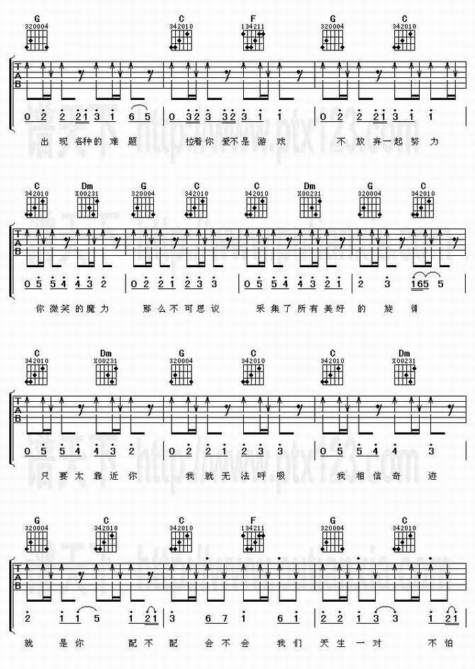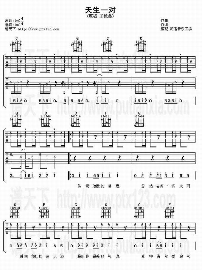 天生一对-王栎鑫(吉他谱 吉他曲谱 吉他六线谱 吉他歌谱 吉它谱 影视吉他谱)