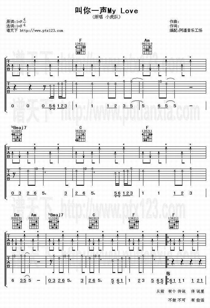 叫你一声my love-小虎队(吉他谱 吉他曲谱 吉他六线谱 吉他歌谱 吉它谱 影视吉他谱)