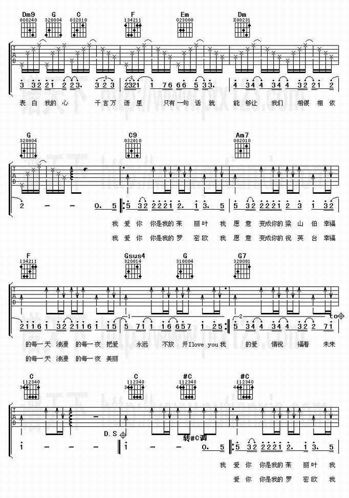 梁山伯与茱丽叶-曹格/卓文萱(吉他谱 吉他曲谱 吉他六线谱 吉他歌谱 吉它谱 影视吉他谱)