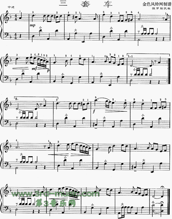 >> 三套车-俄罗斯民歌(手风琴谱)