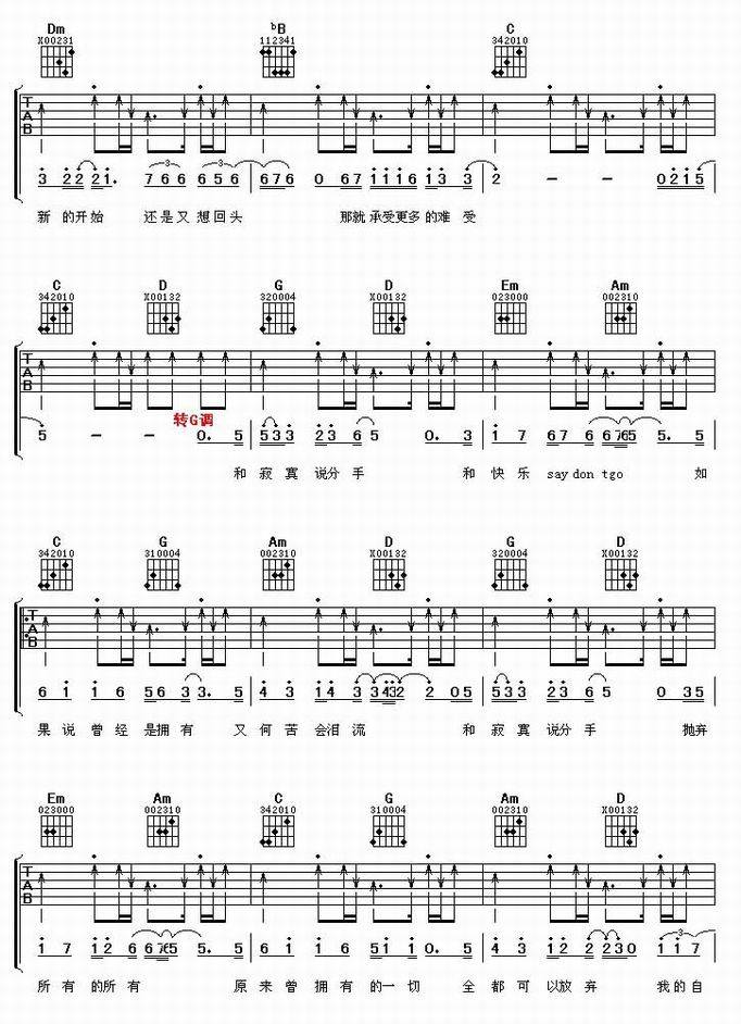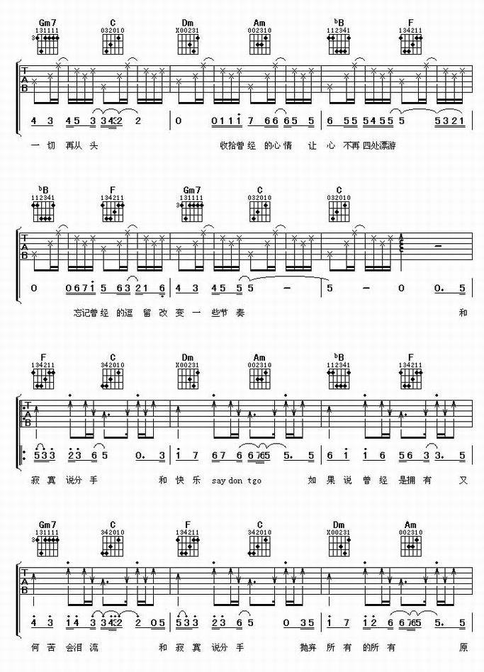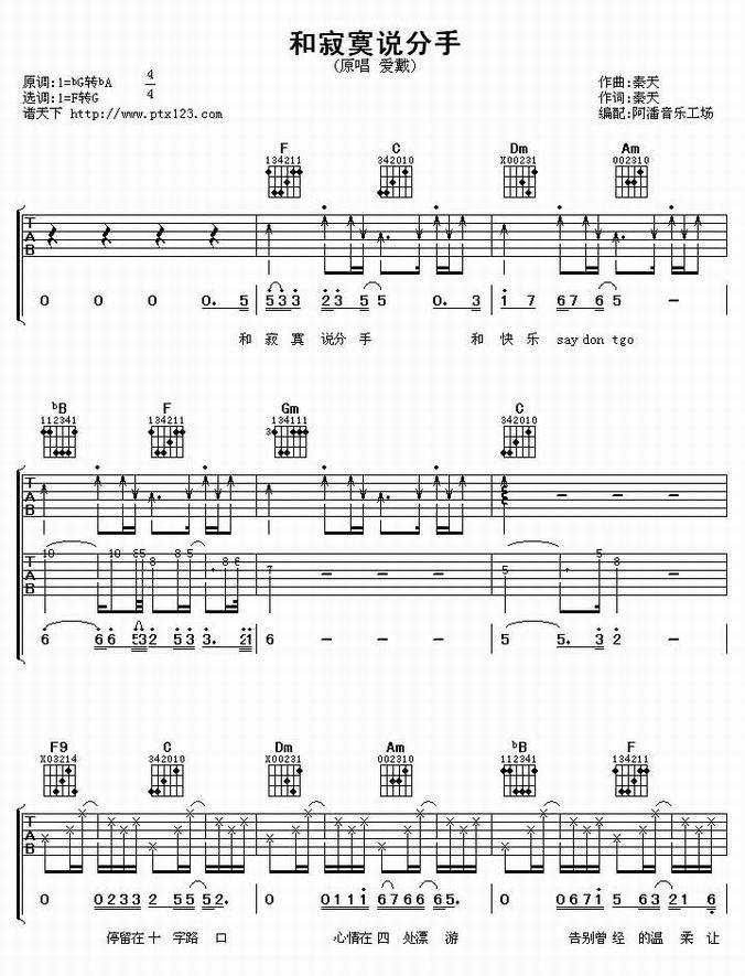 和寂寞说分手-爱戴(吉他谱 吉他曲谱 吉他六线谱 吉他歌谱 吉它谱 影视吉他谱)