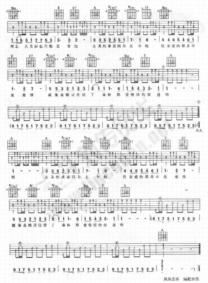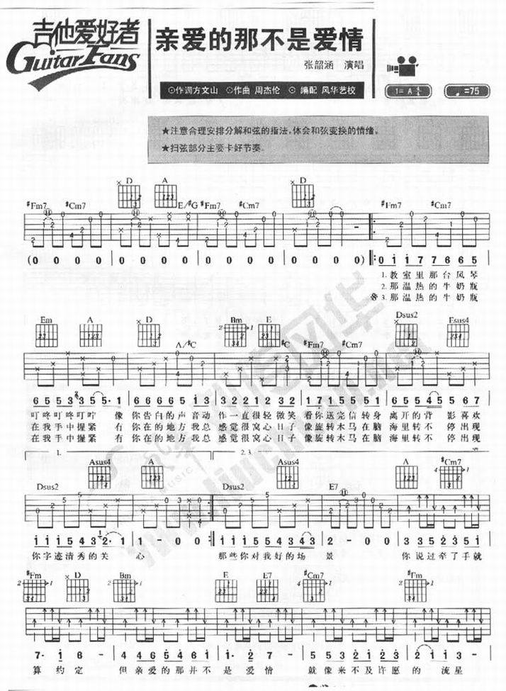 亲爱的那不是爱情-张韶涵(吉他谱 吉他曲谱 吉他六线谱 吉他歌谱 吉它谱 影视吉他谱)