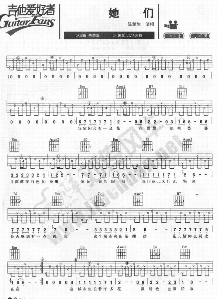 她们-陈楚生(吉他谱 吉他曲谱 吉他六线谱 吉他歌谱 吉它谱 影视吉他谱)