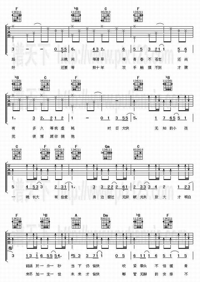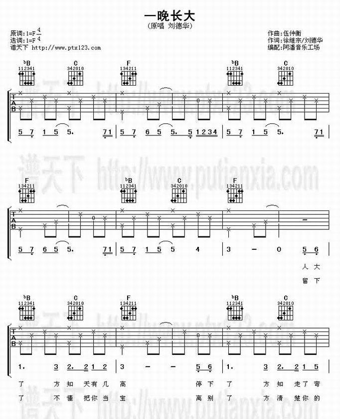 一晚长大-刘德华(吉他谱 吉他曲谱 吉他六线谱 吉他歌谱 吉它谱 影视吉他谱)