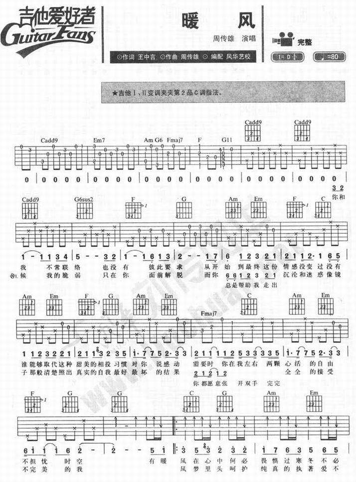 暖风-周传雄_小刚(吉他谱 吉他曲谱 吉他六线谱 吉他歌谱 吉它谱 影视吉他谱)