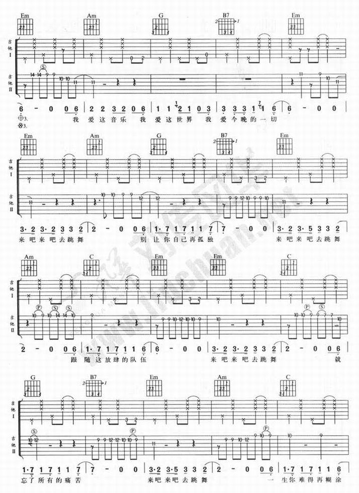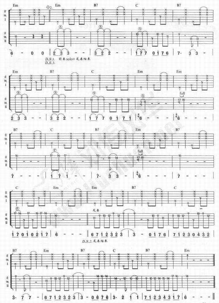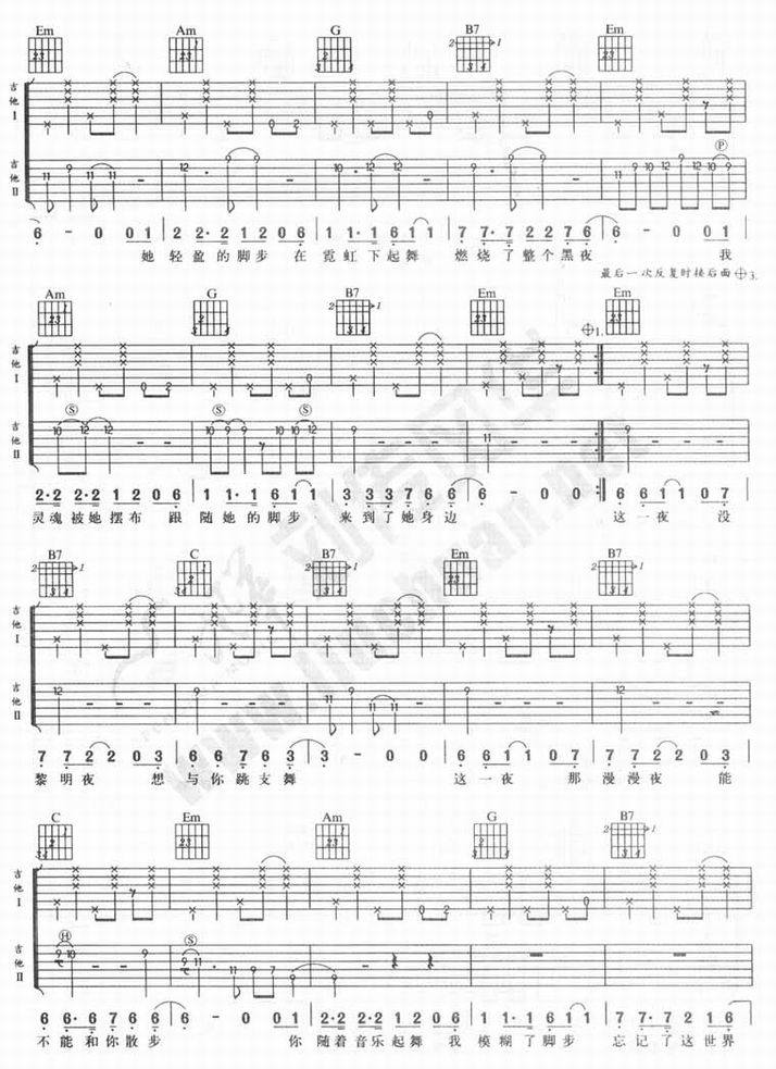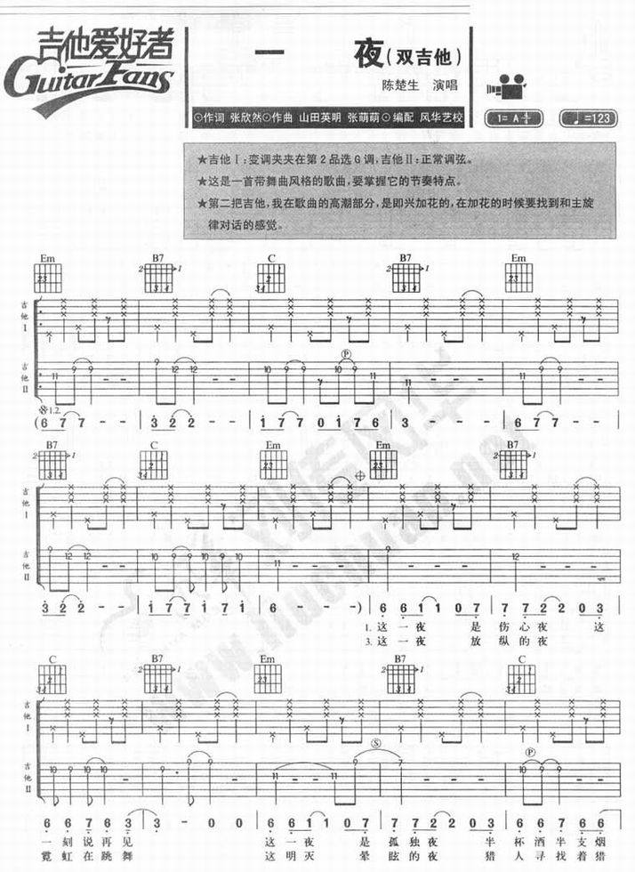 一夜-陈楚生(吉他谱 吉他曲谱 吉他六线谱 吉他歌谱 吉它谱 影视吉他谱)