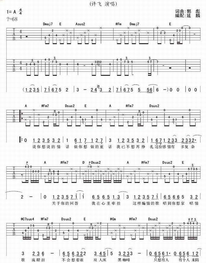 淡淡的歌-许飞(吉他谱 吉他曲谱 吉他六线谱 吉他歌谱 吉它谱 影视吉他谱)
